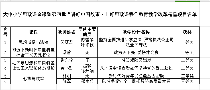 喜讯:近日,澳门网投官网获得大中小学思政课金课暨第四批“讲好中国故事·上好思政课程”教育教学改革精品项目一等奖一项,二等奖四项,三等奖一项。