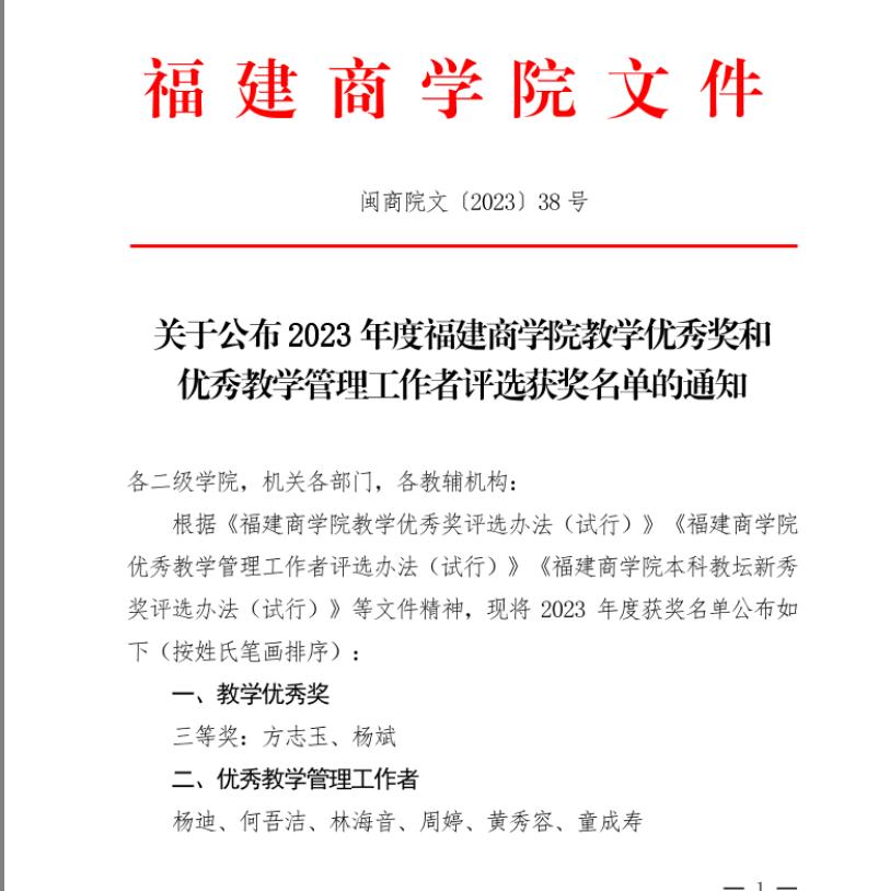 喜讯:澳门网投官网周婷老师获得2023年度澳门网投官方网站优秀教学管理工作者荣誉称号