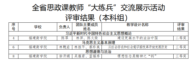 澳门网投官网教师在全省思政课教师“大练兵”交流展示活动中获得本科组二等奖1个,三等奖2个,具体名单如下: