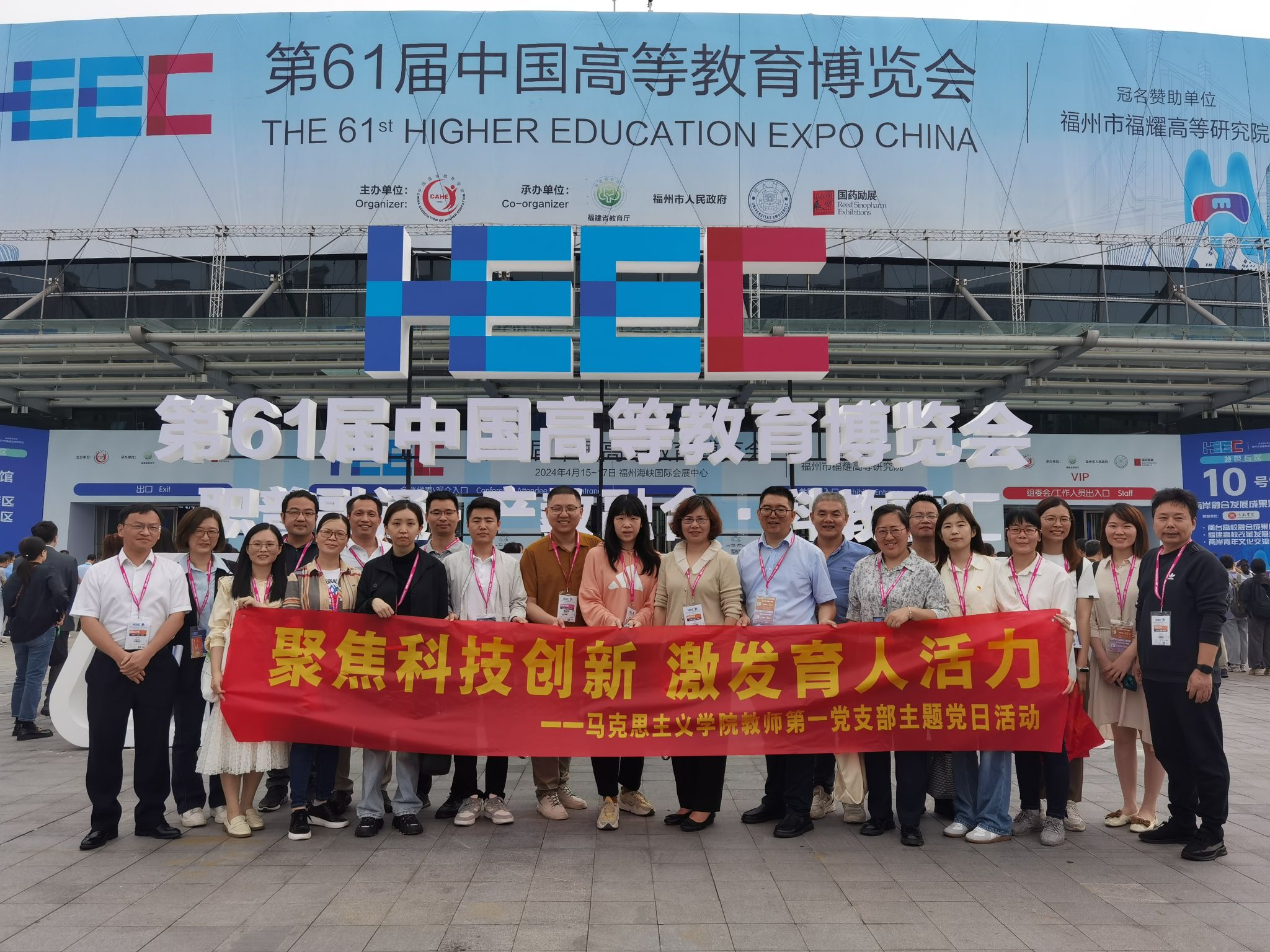 4月16日,澳门网投官方网站教师第一党支部组织党员们参加了在福州举办的第61届中国高等教育博览会。此次支部主题党日活动以“聚焦科技创新 激发育人活力”为主题,旨在探索科技创新在教育领域的应用,以及如何更有效地激发思政课育人的新活力。