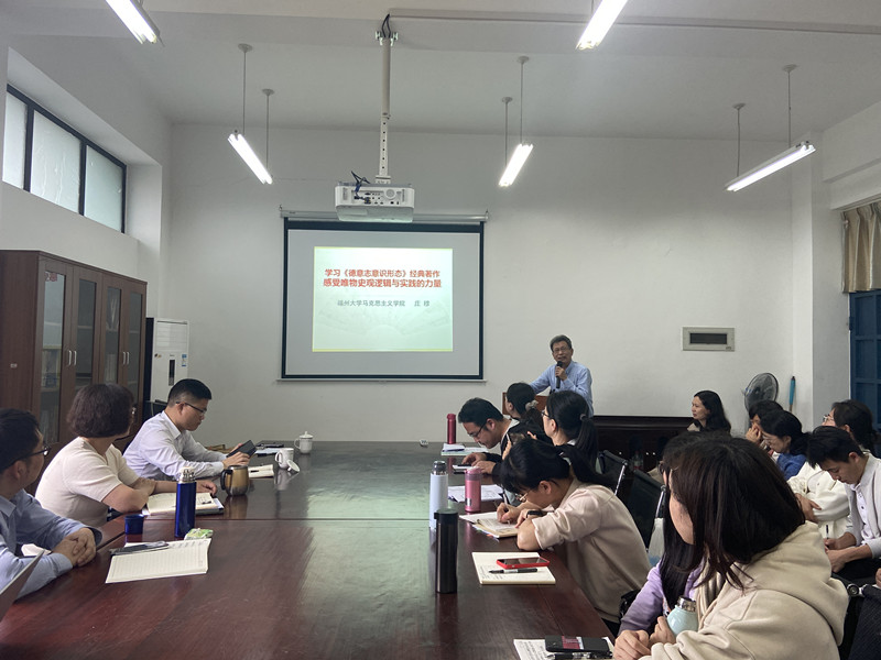 2022年5月24日下午,马克思主义基本原理教研室邀请福建省思想政治理论课教学指导委员会副主任委员、原福州大学澳门网投官方网站院长庄穆教授做了题为“学习《德意志意识形态》经典著作,感受唯物史观逻辑与实践的力量”集体备课专题学习。教务处处长庄惠明参加了本次集体备课会,集体备课会由原理教研室主任黄玮老师主持。