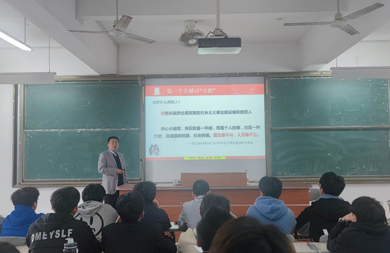 杨晓翔以“培养什么样的人?”这一问题导入课堂教学。授课中,他生动讲述了周恩来、钱学森等历史人物报效祖国、矢志不渝的爱国事迹,引导学生从明大德、守公德、严私德三个方面“立德”;分享了习近平在陕北的七年知青生活,并从学贯中西、博古通今、文理兼备三个角度解读了“博学”;从中国共产党的最高理想、奋斗目标、宗旨以及个人的发展等角度阐释了“梦想”对于一个国家、民族和个人的重大意义。最后,他用习近平总书记的“现在,青春是用来奋斗的;将来,青春是用来回忆的”勉励青年大学生要在历史人物光辉事迹的学习中明大德、立大德,培养良好的精神品质、行为习惯;在刻苦学习中做到博古通今、文理兼备以及在对科学理论、历史规律、基本国情的正确认识上树立远大理想,主动将个人理想融入国家民族的伟大事业中,勇作实现中华民族伟大复兴的开拓者、奉献者。