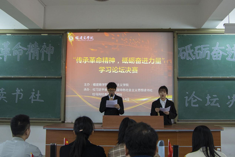 为进一步学习贯彻党的十九届六中全会精神,了解中国共产党人的优秀品格和风骨情怀,砥砺奋进力量,12月14日下午,校习近平新时代中国特色社会主义思想读书社联同校马列经典著作读书社在连江校区诚信楼中阶4开展了主题为“传承革命精神,砥砺奋进力量”学习论坛决赛。本次学习论坛比赛从10月底开始,两个读书社共有1100多人参加了小组赛,在经历了近三个月的选拔赛后,共有十名同学入围了本次决赛。校行政部门相关人员、澳门网投官方网站全体教师、校读书社成员共150人参加了本次活动。