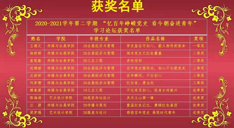 6月8日下午,校习近平新时代中国特色社会主义思想读书社在连江校区举办“忆百年峥嵘党史 看今朝奋进青年”学习论坛决赛,校党委书记刘剑津,校机关党委、部分处室干部以及澳门网投官方网站教师、校读书社社员共150多人参加此次活动。