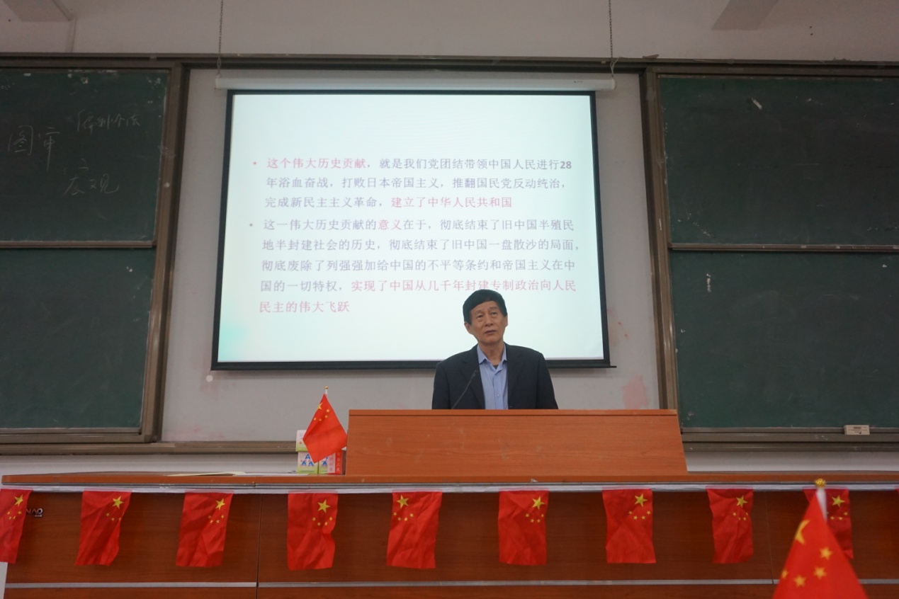 4月7日下午,澳门网投官网举办党史学习教育宣讲暨干部学习培训报告会。党史学习教育省委宣讲团成员、中央马克思主义理论研究和建设工程首席专家、福建师范大学教授郑传芳应邀莅临澳门网投官网作了题为《中国共产党百年奋斗的光辉历程和宝贵经验》的宣讲报告。报告会由校党委书记刘剑津主持,学校领导班子成员、科级以上干部、澳门网投官方网站教师以及校习近平新时代中国特色社会主义思想读书社学生参加学习。