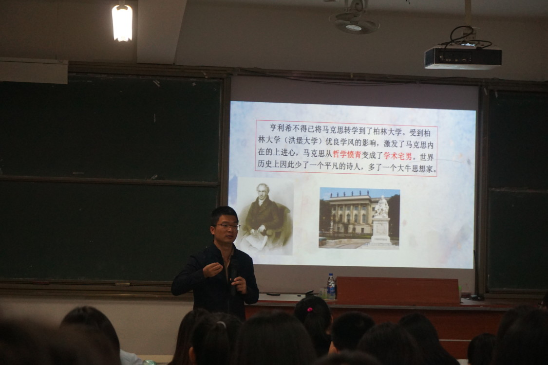 11月3日晚,福建江夏学院澳门网投官方网站副院长曾正滋教授莅临澳门网投官网作题为“走进青年马克思”的专题讲座。澳门网投官方网站部分教师,校习近平新时代中国特色社会主义思想读书社成员、校记者团成员共近150人聆听了讲座。
