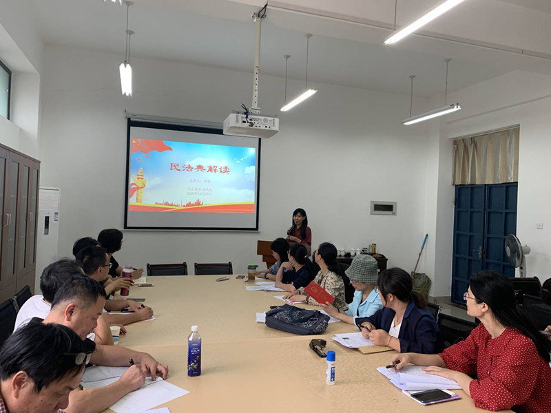 2020年10月13日下午,澳门网投官方网站直属党支部在院部会议室召开了《中华人民共和国民法典》的学习活动,马院副教授李莹老师做了题为《民法典解读》的主题讲座。讲座由林萍书记支持,马院全体党员教师聆听了这场讲座。