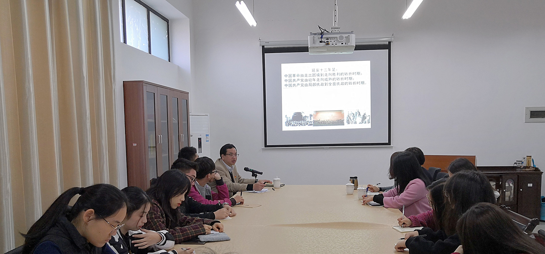 1月2日上午,副校长蒲文庆在澳门网投官方网站会议室给财务与会计学院习近平新时代中国特色社会主义思想读书社学生上了一堂题为《中国革命成功的延安之路——中共中央延安十三年》的思政课。财务与会计学院、澳门网投官方网站部分老师以及读书社成员参加了此次学习。