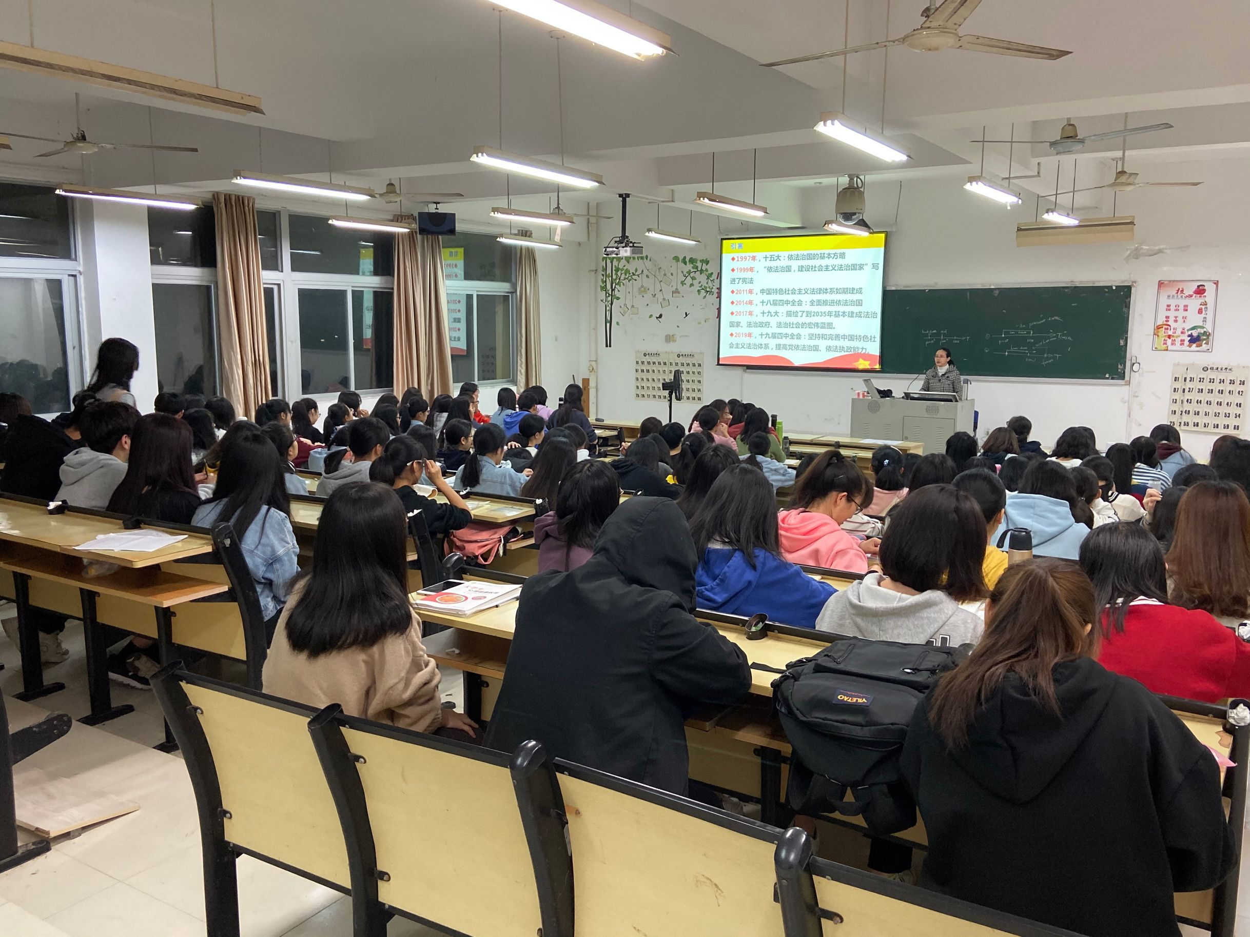 12月17日晚,马克思主义理论大讲堂第四讲在马尾校区远志楼T1举行,澳门网投官方网站邱镛妃副教授作了题为“全面推进依法治国”的专题讲座。