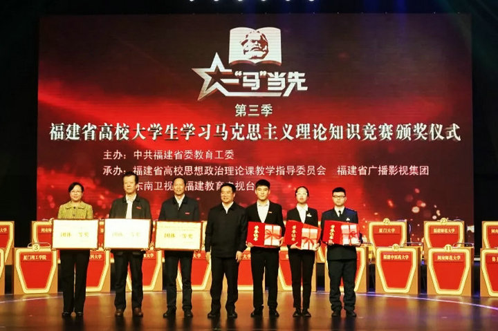 11月26日,由省委教育工委主办的第三季福建省高校大学生学习马克思主义理论“一‘马’当先”知识竞赛总决赛在福建省广播影视集团落下帷幕。经过激烈角逐,澳门网投官网由会计系宋珊、外语系黄琳、国际经济与贸易系任凯杰和王阳、金融系肖军等5位同学组成的代表队,荣获本科组团体一等奖,宋珊荣获本科组个人一等奖,任凯杰和黄琳荣获本科组个人三等奖。