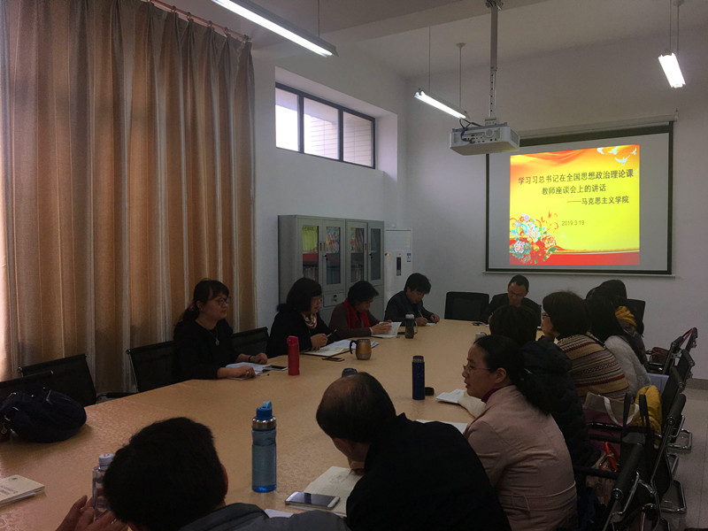 澳门网投官方网站于3月19日下午召集学院全体专职教师进行座谈,学习习近平总书记重要讲话精神,交流体会,畅谈感想。马院林萍副院长指出,党中央历来高度重视思想政治工作,特别是党的十八大以来,以习近平同志为核心的党中央高度重视思想政治理论课建设,作出一系列重大决策部署,对高校澳门网投官方网站和思想政治理论课教师寄予厚望。习近平总书记在新时代背景下专门主持召开如此高规格的学校思政课教师座谈会,充分体现了党中央对思政课建设的高度重视和对思政课教师队伍的亲切关怀。思政课是培养社会主义建设者和接班人的主渠道,关系到培养什么人、怎样培养人、为谁培养人的根本任务,是一门关键课程,对于其重要性一定要深刻认识到位。习近平总书记对思政课教师提出的“六点要求”和讲好思政课的“八个统一”,对办好思想政治理论课具有重要的指导意义。我们要按照习近平总书记提出的要求,发挥积极性、主动性、创造性,不断提高政治站位,砥砺高尚品格,练就深厚功底,赢得学生的尊重和喜爱。