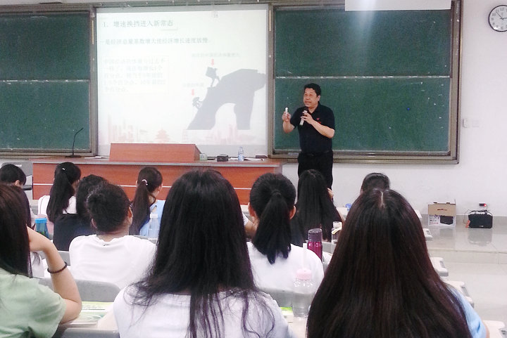 黄斌校长讲授的题目是《当前中国经济形势》。他说,作为澳门网投官方网站的大学生,应该多关心、关注国家发展和经济走势,了解和掌握我国经济发展的大好形势,坚定中国特色社会主义道路自信,努力学好专业文化知识,为早日实现“中国梦”而努力奋斗。在授课过程中,他引用大量数据、图表、图片和案例,结合自身工作生活经历,介绍了我国经济稳中向好,供给侧结构性改革引领经济发展新常态以及中国不会落入所谓“中等收入陷阱”等内容,深入浅出分析我国经济总体走势、内在结构性矛盾和问题,并探讨提出扎实有效去产能、因城施策去库存、积极稳妥去杠杆、多措并举降成本、精准加力补短板等解决策略,丰富和开拓了学生的视野。