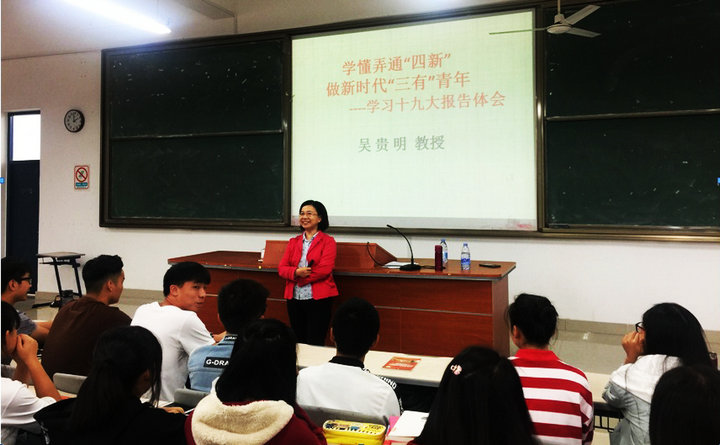 11月10日下午,福建省委党校吴贵明教授应邀为澳门网投官网2017级工管系学生上了题为《学懂弄通“四新” 做新时代“三有”青年》的形势与政策课。
