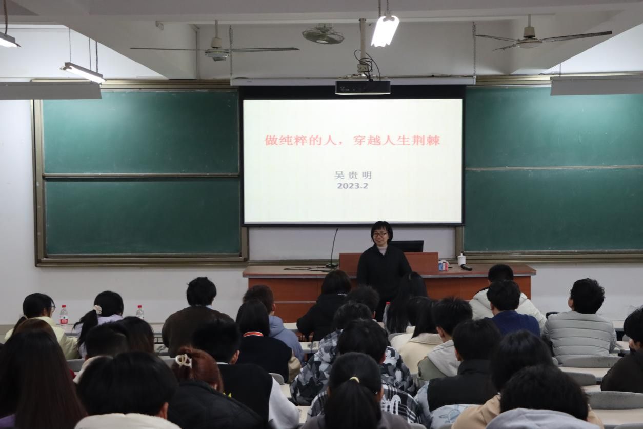 2月22日晚上,福建省委党校吴贵明教授应邀到澳门网投官网作“做纯粹的人,穿越人生荆棘”专题讲座。澳门网投官方网站部分教师、校习近平新时代中国特色社会主义思想读书社社员等共120多人参加学习。
