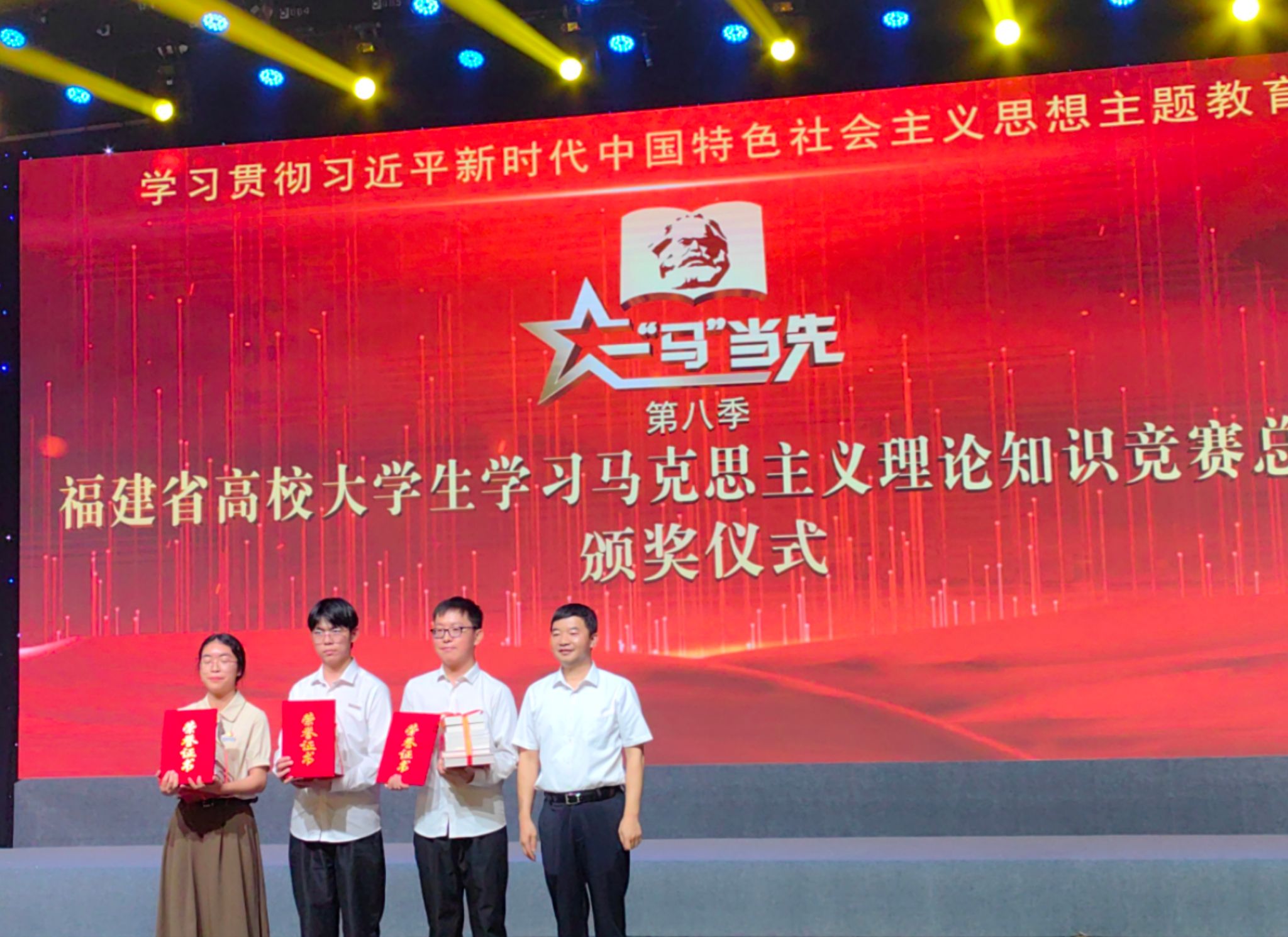 8月15日,由中共福建省委教育工委主办的第八季福建省高校大学生学习马克思主义理论“一‘马’当先”知识竞赛总决赛落下帷幕,澳门网投官网参赛学生在比赛中喜获佳绩。省委常委、宣传部部长张彦,省委教育工委书记、省教育厅厅长叶燊莅临总决赛现场并为获奖选手颁奖。副校长蒲文庆参加活动。