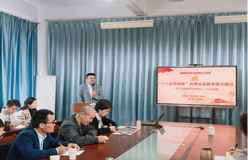 为深入学习宣传贯彻党的二十大精神,持续推进党的二十大精神进教材、进课堂、进头脑,实现与思想政治理论课教学深度融合。11月28日上午,全国模范教师、教育部党的二十大精神师生巡讲团成员、闽江学院马克思主义副教授陈东应邀莅临澳门网投官网开展题为《“六个必须坚持”的理论品格和现实路径》的主题报告,澳门网投官方网站全体教师、校读书社40多位同学聆听了报告。