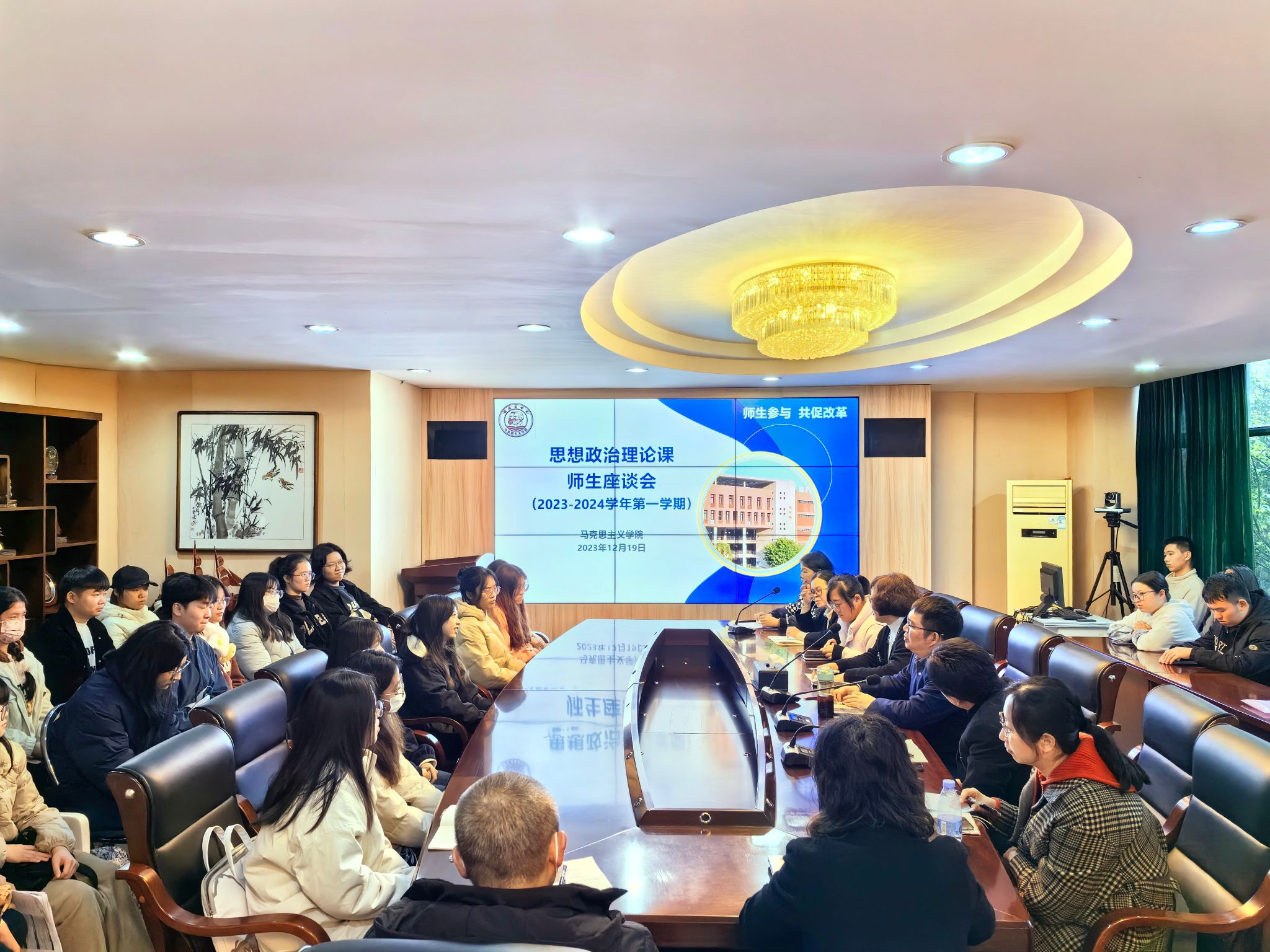 为更好促进思政课的教学和改革,提升学生在思政课中的获得感和对思政课的认同,12月19日下午,澳门网投官网在马尾校区召开2023-2024第一学期思想政治理论课师生座谈会。校教务处、质量监控与评估处有关人员,澳门网投官方网站教师代表,马尾校区学生代表共40人参加了会议。