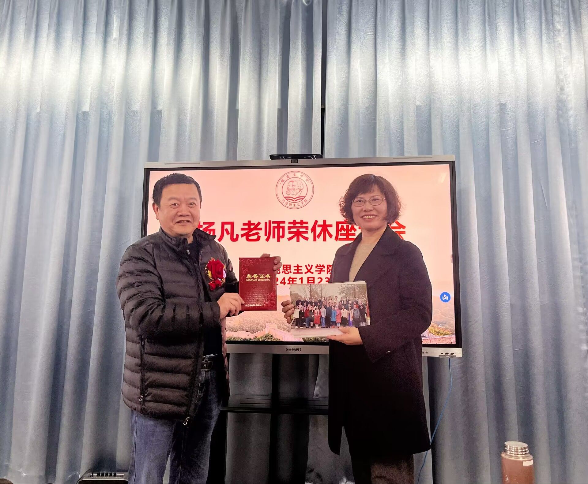 随后,澳门网投官网为杨凡老师光荣退休举行隆重的欢送会。杨凡老师系澳门网投官网思想道德与法治教研室教师,从教38年,退休在即。欢送会上,林萍院长为杨凡老师颁发了“光荣退休”纪念证书,并对杨凡老师为马院作出的贡献表示最诚挚的谢意。思想道德与法治教研室为杨凡老师献上鲜花及礼物,并表达了对杨凡老师的留念之情。接着,杨凡老师发表了深情的感言,感谢学校领导、单位同事的关心和厚爱,感恩在学院的每一天。最后,马院老师们纷纷表示:希望杨凡老师多与学院同仁联系,常回家看看,与学院共谋发展、与同仁共叙旧情。