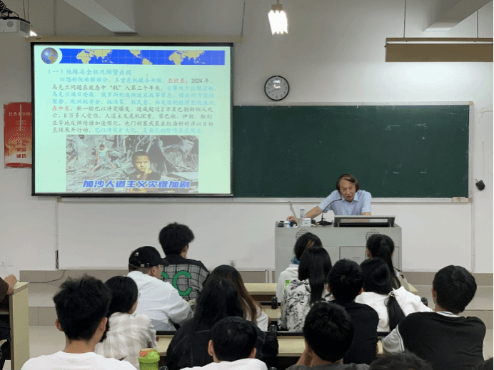 郭健彪教授逻辑清晰、见解深刻的专题讲座,使现场大学生对当前国际形势有更清晰的认识,有力促进现场大学生在复杂多变的国际局势背景下更好地理解中国式现代化的深刻内涵和重大意义,现场学生纷纷表示要继续深入学习贯彻党的二十大精神,深刻领会中国式现代化的中国特色、本质要求和重大意义,在以中国式现代化全面推进中华民族伟大复兴的征程中贡献青年人的力量。