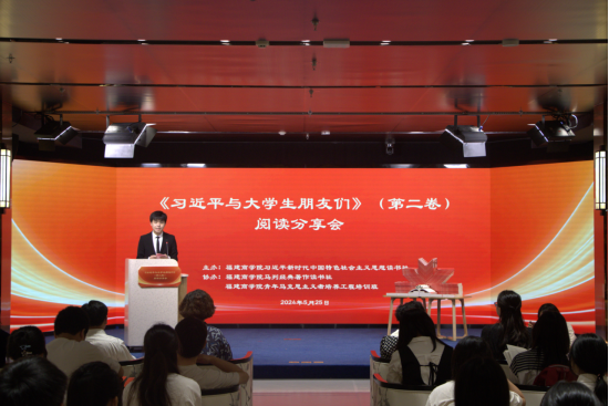 林文艺副校长在致辞中表示,《习近平与大学生朋友们》第二卷是一本指引青年大学生健康发展的成长之书,是一堂激励青年大学生建功时代的思政大课;要发挥读书社社员和青马班学员的示范引领作用,带头读书交流,带动全校大学生在共同学习、交流心得、碰撞思想、启迪心灵中大兴读书之风。她勉励在场的青年大学生们要如饥似渴、孜孜不倦学习,既多读有字之书,也多读无字之书,在书中品读理想的甘甜、激扬担当的志气、培育为民的情怀。