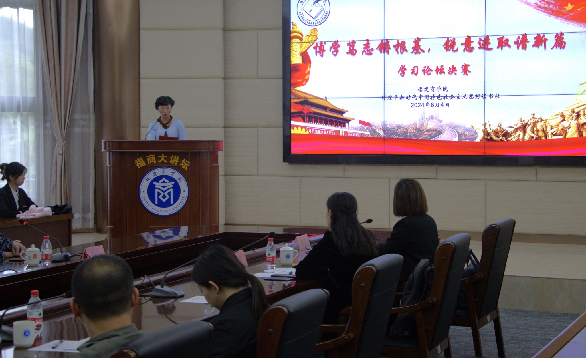 2024年6月4日,澳门网投官方网站习近平新时代中国特色社会主义思想读书社与马列经典著作读书社,在连江校区明德楼视频会议室联合举办了主题为“博学笃志著根基 锐意进取谱新篇”的学习论坛决赛。学校林文艺副校长、澳门网投官方网站负责人和读书社指导老师、澳门网投官方网站部分教师及读书社社员等近百名师生参加此次活动。