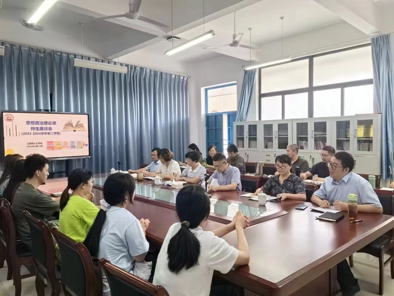6月11日下午,澳门网投官网在连江校区召开2023-2024第二学期思想政治理论课师生座谈会,深入学习贯彻习近平总书记对学校思政课建设重要指示精神,探讨如何推动新形势下思政课建设工作。校党委书记吴访益、副校长林文艺、校质量监控与评估处和教务处有关人员、澳门网投官方网站党政领导班子、教师代表及连江校区各专业的学生代表参加了会议。
