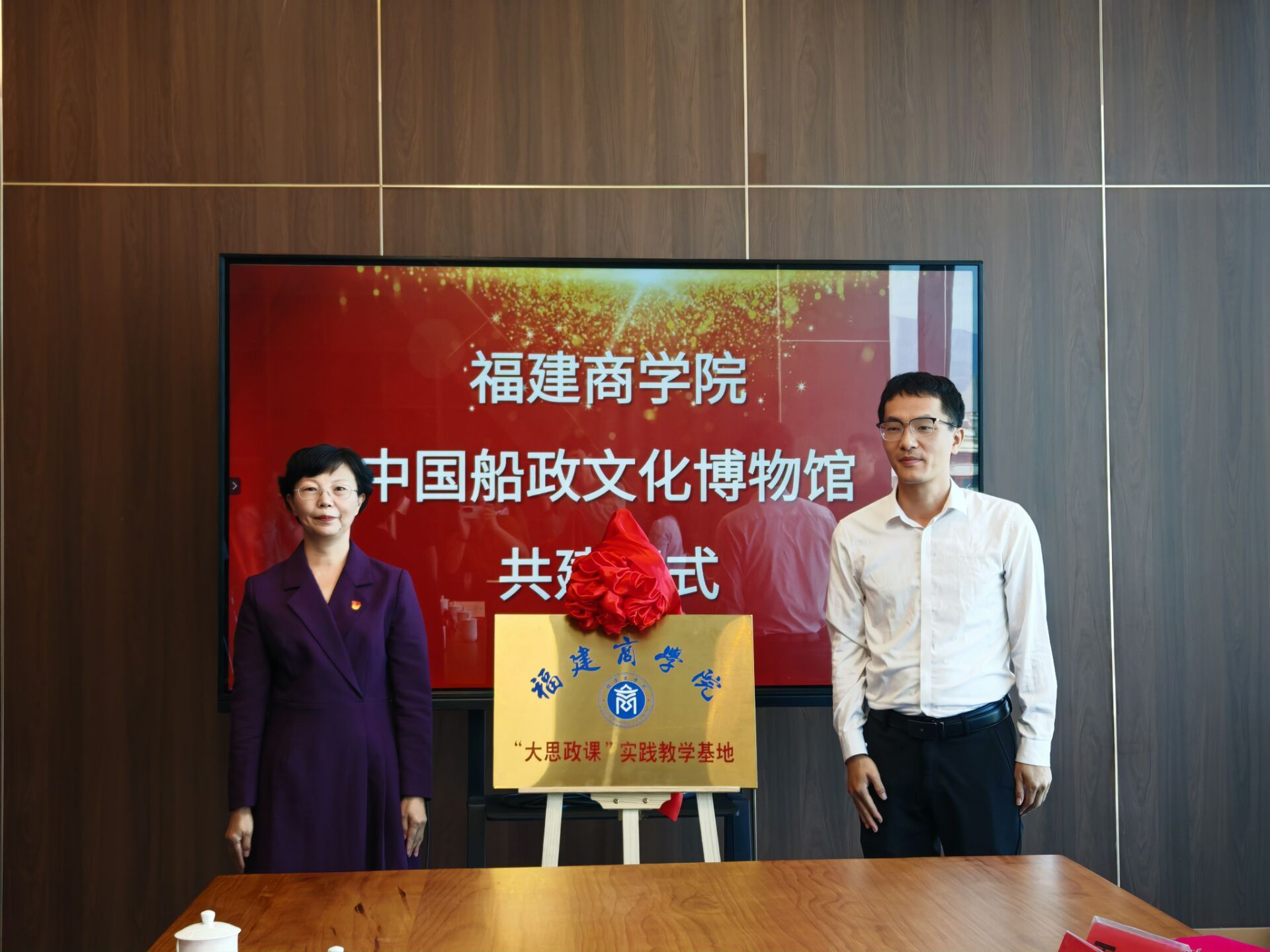 10月29日,澳门网投官网与中国船政文化博物馆举行“大思政课”实践教学基地签约暨揭牌仪式。副校长林文艺、福建船政文化管理委员会副主任杨明新、福建船政文化管理委员会场馆管理处副处长王日强、中国船政文化博物馆馆长王芳、澳门网投官方网站党政班子、工商管理学院党委班子及教师与学生代表30余人参加。仪式由馆长王芳主持。