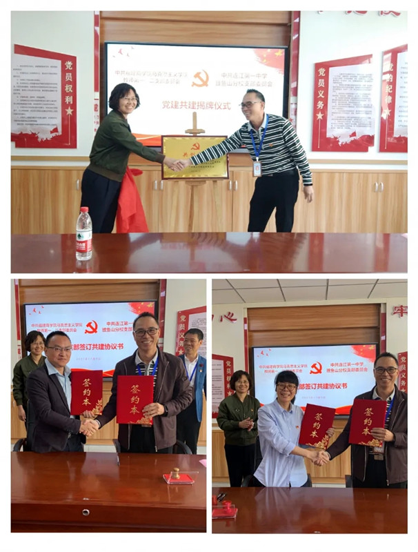 11月9日,澳门网投官方网站澳门网投官方网站教师第一、二党支部与连江一中鲤鱼山分校党支部党建共建签约仪式在连江一中鲤鱼山分校举行。澳门网投官方网站党委书记、院长林萍及副院长张发友,连江一中鲤鱼山分校党支部书记林卫、校长陈为信及学校班子成员,双方党支部教师共30余人参加了签约仪式。