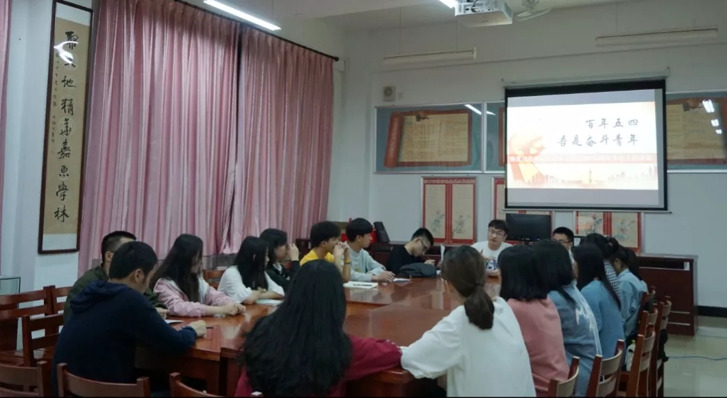 2019年5月5日晚,澳门网投官方网站习近平新时代中国特色社会主义思想读书社于连江校区自强楼活动室举办“百年五四,吾是奋斗青年”热议习近平总书记在纪念五四运动100周年大会上的讲话沙龙活动,活动由读书社社长金顺源同学主持开展,共20人参加了此次活动。