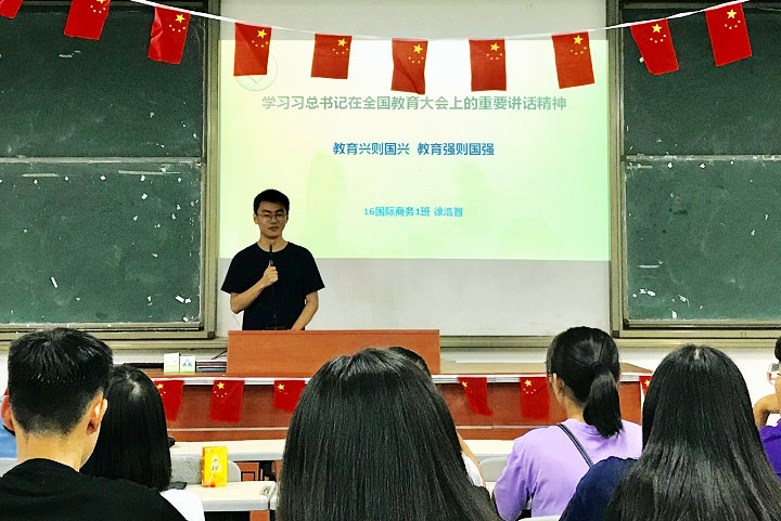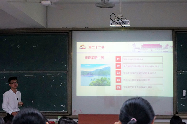 据悉,此前读书社理论骨干宣讲小分队成员、读书社副社长徐浩智同学也以“学习习近平总书记在全国教育大会重要讲话精神”为主题面向读书社全体干部、干事进行了宣讲。本学期以来,澳门网投官网习近平新时代中国特色社会主义思想读书社认真根据校党委下发的《澳门网投官方网站关于进一步开展习近平新时代中国特色社会主义思想“大宣讲”工作的方案》要求,积极遴选优秀社员成立理论骨干宣讲小分队,制定宣讲实施方案,本月已按计划开展两场宣讲活动,取得良好效果,获得同学们的广泛好评。