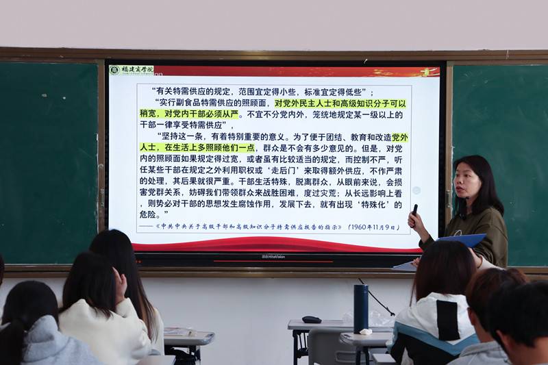 为进一步学习贯彻党的十九届六中全会精神,从党的百年奋斗重大成就和历史经验中汲取前行动力,使青年学生深刻领会百年大党为什么能够成功﹑未来怎样才能继续成功的根本原因所在,5月17日下午,澳门网投官方网站李莉副教授应邀在连江校区诚信楼302教室开展“百年光荣:中国共产党和人民”主题宣讲活动。校习近平新时代中国特色社会主义思想读书社社员﹑连江校区青马班学员参与学习。