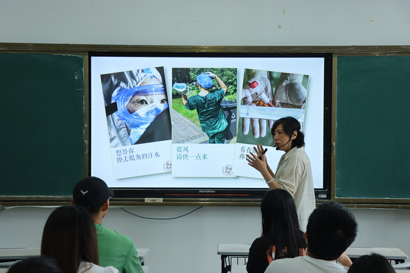 陈用芳教授从“人民性”的概念解读为切入点,详细讲解了“人民性”就是以最广大人民的根本利益为最高原则的价值取向﹑“人民性”是中国共产党的核心党性,也是马克思主义的基本品格﹑“人民性”不是精致的利己主义,更不是西方的民粹主义等六个方面的具体内容。围绕“中国抗疫”的生动实践,陈用芳教授结合中华优秀传统文化中“道”和“器”的概念,和青年学生分享了抗疫之道:集中统一领导,坚持“人民至上、生命至上”的理念﹑抗疫之器:抗疫过程中具体的方针政策、配套措施,操作实践﹑“道器合一”:抗疫斗争中的“道”与“器”形成和谐的统一体等三个方面的深刻思考。在与西方抗疫的比较中,陈用芳教授用具体的实例,把“中国之治”和“西方之乱”形成了鲜明的对照,彰显了我们党始终把最广大人民的根本利益放在首位,把人民生命安全和身体健康放在第一位,使现场青年学生深刻理解党坚持人民至上的崇高价值追求。
