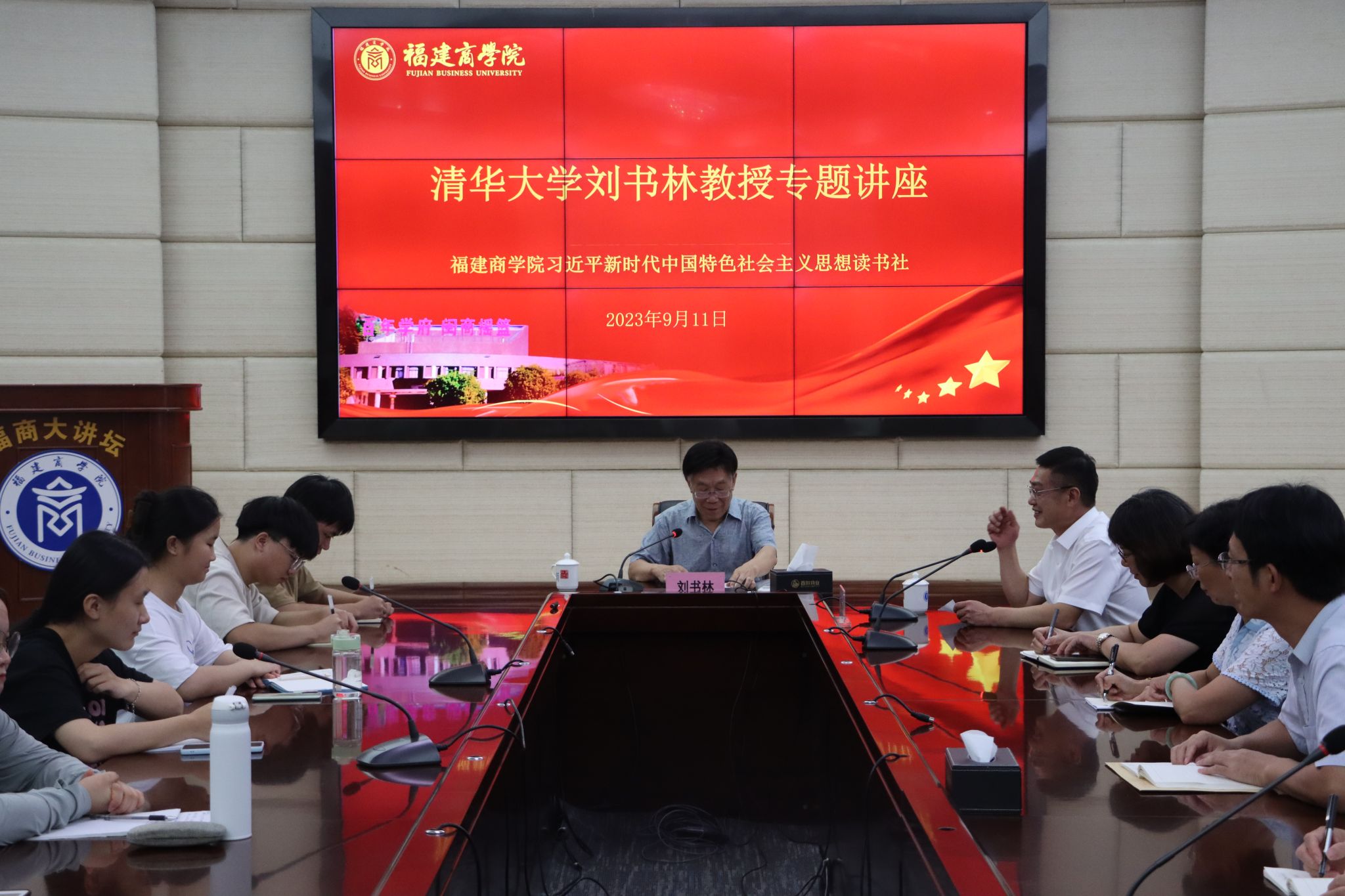 2023年9月11日下午,清华大学澳门网投官方网站刘书林教授莅临澳门网投官网理论读书社开展讲学,旨在带领师生们深刻理解如何将马克思主义基本原理与中华优秀传统文化相结合,不断推动中华优秀传统文化创造性转化和创新性发展。校党委书记吴访益、读书社师生代表近100人参与本次讲座。