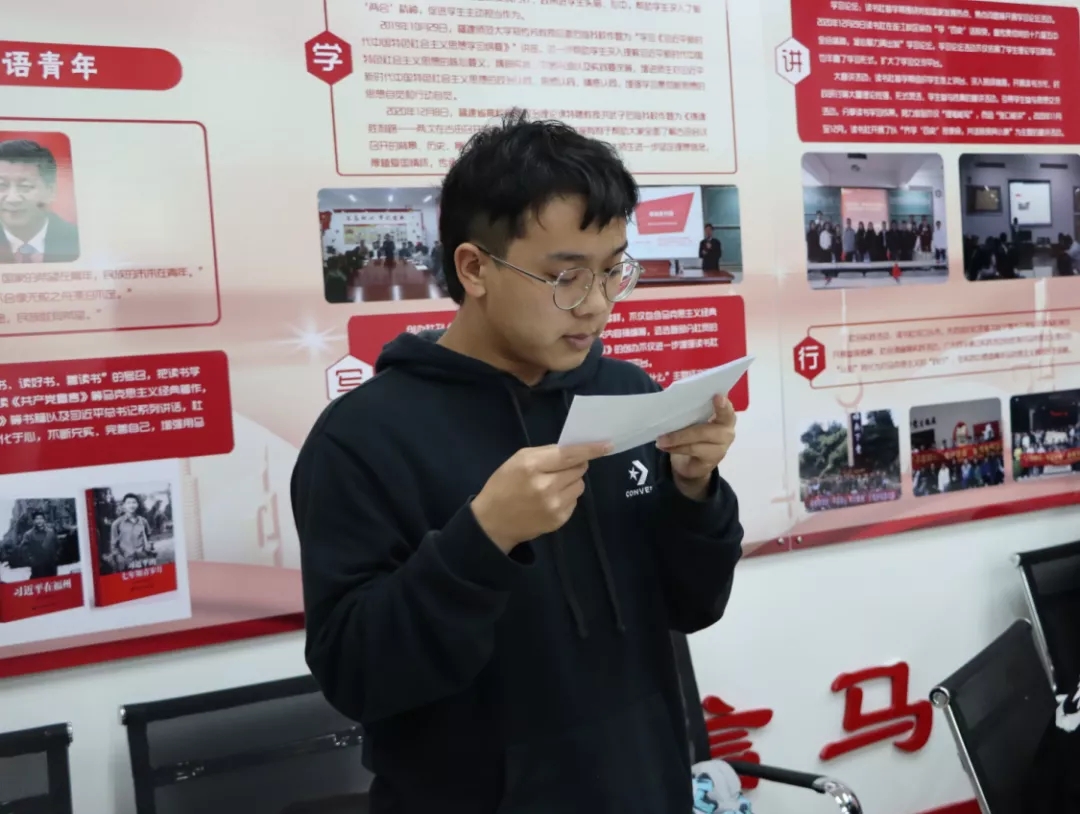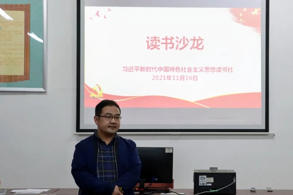 为进一步深入学习中国共产党百年奋斗重大成就和历史经验,深刻感受中国共产党人在中华民族伟大复兴征程中体现出的爱国情怀、高尚品格和精神风骨,汲取奋进力量,校习近平新时代中国特色社会主义思想读书社于2021年11月16日晚在连江校区自强楼114活动室开展读书沙龙活动。澳门网投官方网站陈阳老师、叶陈钦老师以及读书社第五小组全体社员共40多人参加此次活动。活动由叶陈钦老师主持。