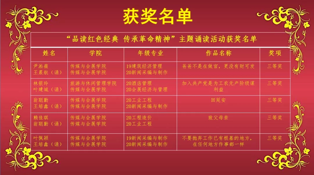 为认真学习贯彻习近平总书记在党史学习教育动员大会上的重要讲话精神,推动全校师生深入学好党史、新中国史、改革开放史、社会主义发展史,回顾中国共产党诞生以来领导人民不断奋进的光辉历程和取得的伟大成就,缅怀革命先烈,不忘初心使命,传承革命精神。澳门网投官网习近平新时代中国特色社会主义思想读书社与校团委广播电台开展的“品读红色经典 传承革命精神”诵读活动已圆满结束!