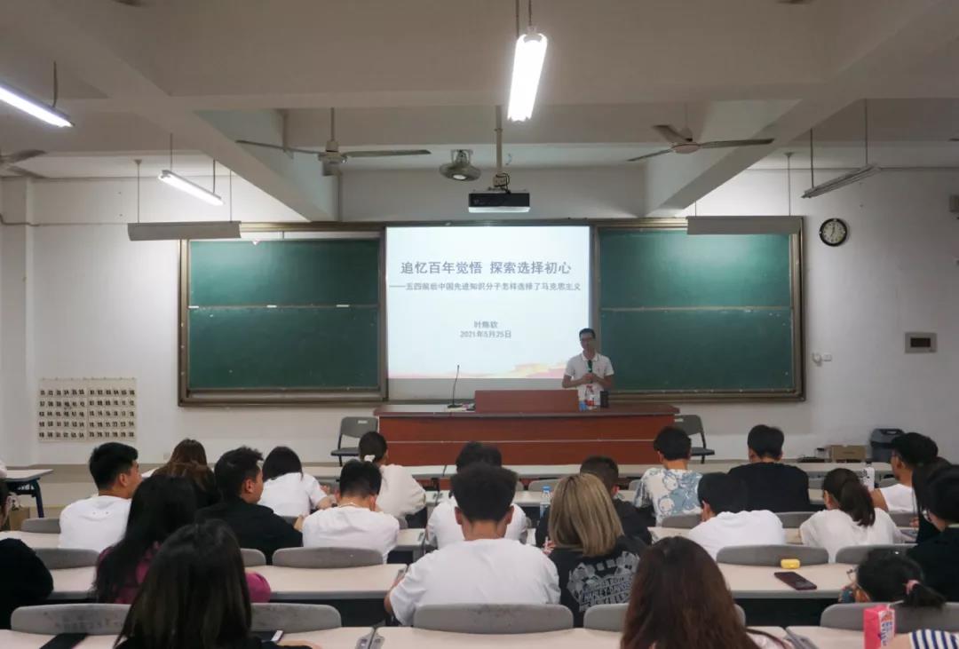为认真学习贯彻落实习近平总书记在党史学习教育动员大会上的重要讲话精神,推动学校师生深入学好党史、新中国史、改革开放史、社会主义发展史,献礼建党一百周年,普及社会科学知识。5月25日晚澳门网投官方网站叶陈钦老师在学校科技活动周开展主题为“追忆百年觉悟 探索选择初心——五四前后中国先进知识分子怎样选择了马克思主义”讲座,校读书社近100名社员参加学习。