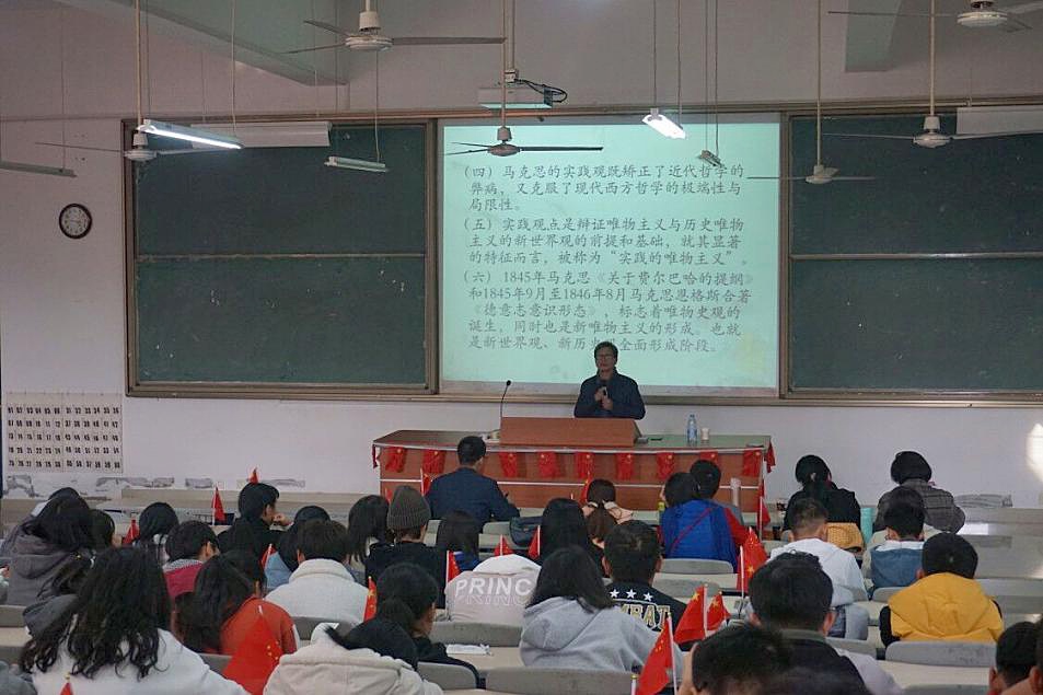 12月3日下午,福州大学庄穆教授到澳门网投官网作题为“天才世界观的萌芽——《费尔巴哈提纲》解读”(下称《提纲》)的讲座。澳门网投官方网站部分教师以及习近平新时代中国特色社会主义思想读书社社员近200人聆听了此次讲座,澳门网投官方网站负责人主持讲座。